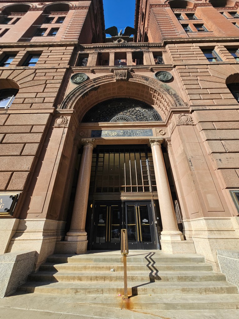 The Omaha Building was altered in 1920 when the 11th floor was added to the east and west towers causing them to lose its distinctive cornice. The inner court behind the entrance was filled in at the second and third floors after World War II to provide additional office space.