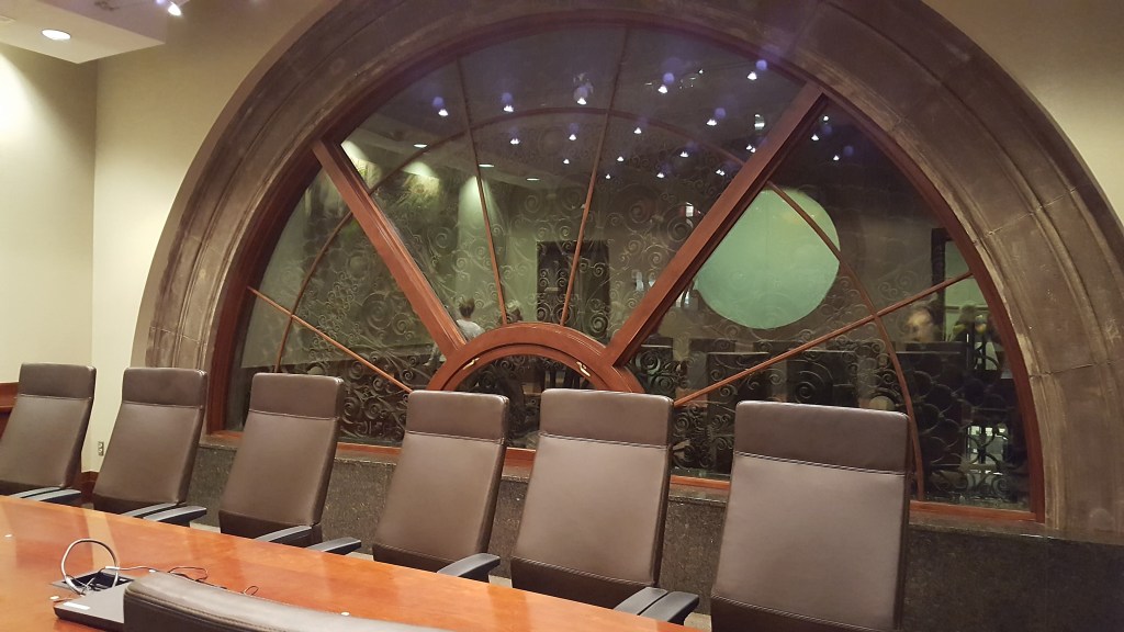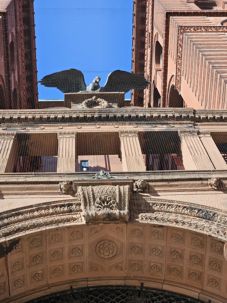 Today the building referred to as “The Old Lady of Farnam Street” remains the home to Kutak Rock which pays tribute to its history with a small museum and a conference room that is named for the architectural firm that designed it. The room features an imposing metal grille window with a large oculus window. Not only that but the Nesting Eagle even returned to its rightful perch after it was acquired by the law firm in 1997.