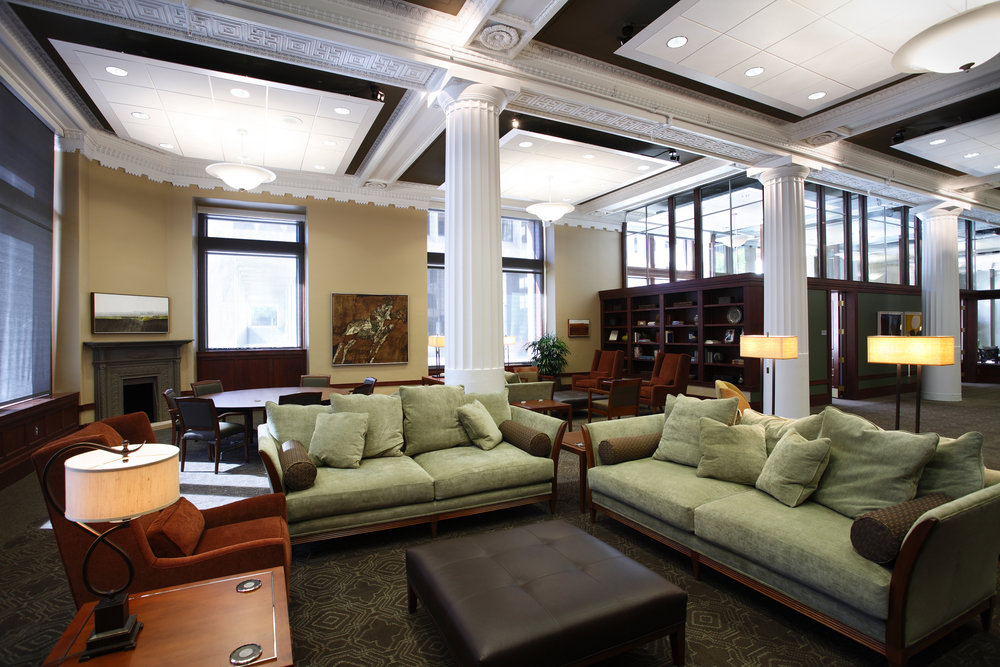 Another renovation in 2006-2007 included the restoration of the first and second floor interiors that uncovered marble trim and four granite columns. Other work included the expansion of the atrium to the 10th floor and the creation a series of bridges connecting the west and east towers.