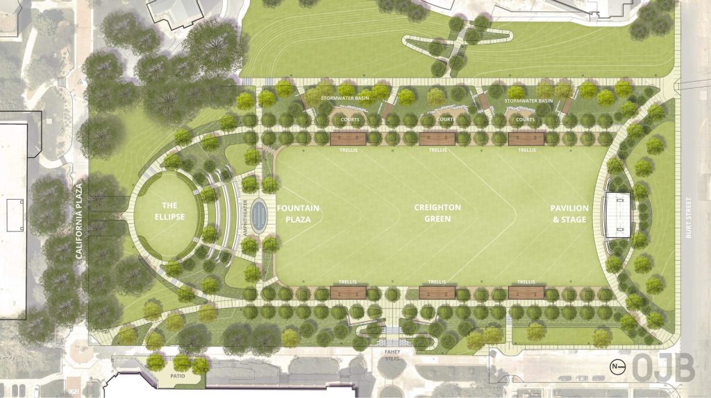 My schedule hasn’t allowed me time to explore some of the new projects around time lately but this is one I wanted to share. In addition to the new baseball and softball fields in North Downtown, Creighton is also in the process of creating the Quadrangle on its campus.