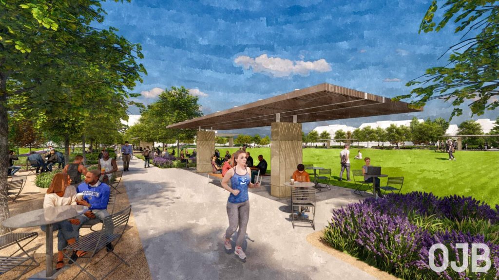 The six acre space will become the epicenter of activity on campus and will be used to host events including graduations and reunions as well as community activities. The space will include natural grass, amphitheatre, pavilion, stage, fountain plaza and an ellipse with an art installation. The Quadrangle will be surrounded by four new residence halls as well as the dentistry building, law center and college of business.