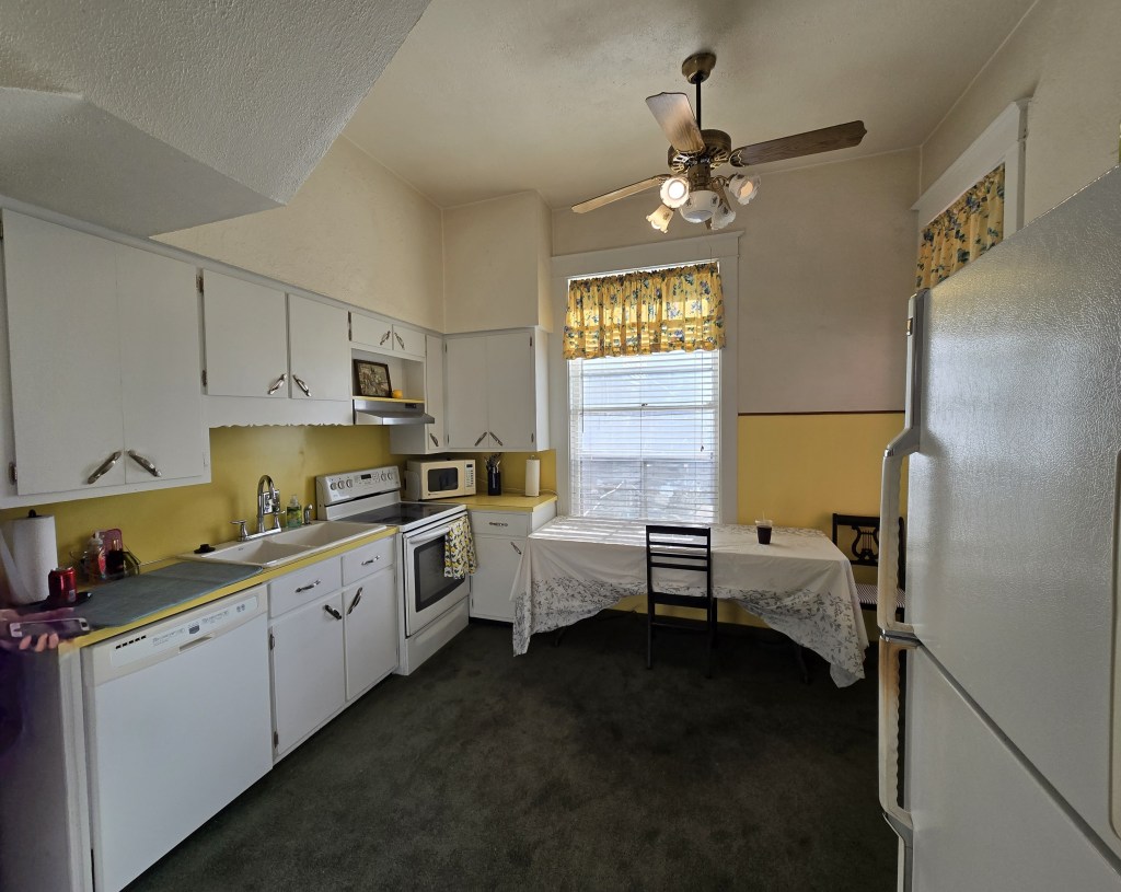 When the Schrat’s sold the house it was in good condition and retained many of its original features including the woodwork, beveled glass paneling and push-button light switches along with the original hardware. The second floor with its three large bedrooms still has an old gas lamp that functioned in the time before electricity was utilized in homes. The unfinished basement still has the exposed clay tile that lined the walls.