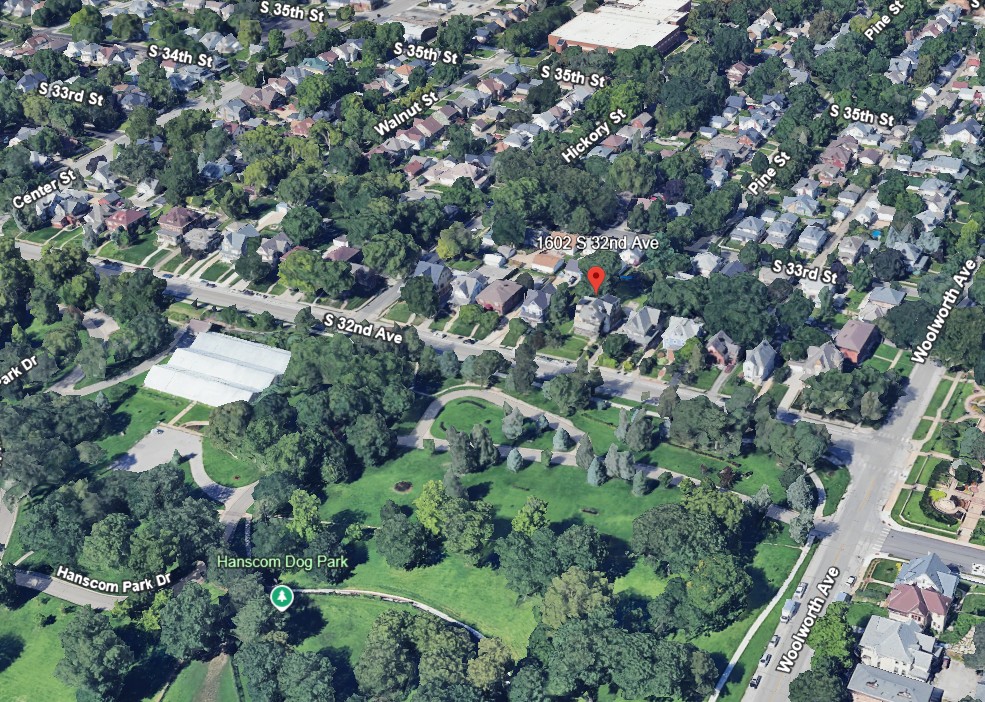 Located at 1602 S 32nd Ave, the 2 1/2 story house featured finials, cupola on its southeast corner, rounded wall on its northeast corner that resembled a turret as well as its elaborately detailed porch, ornamental shingling and large brick chimney. The steeply pitched and irregular roofline added to the asymmetrical nature of the style.