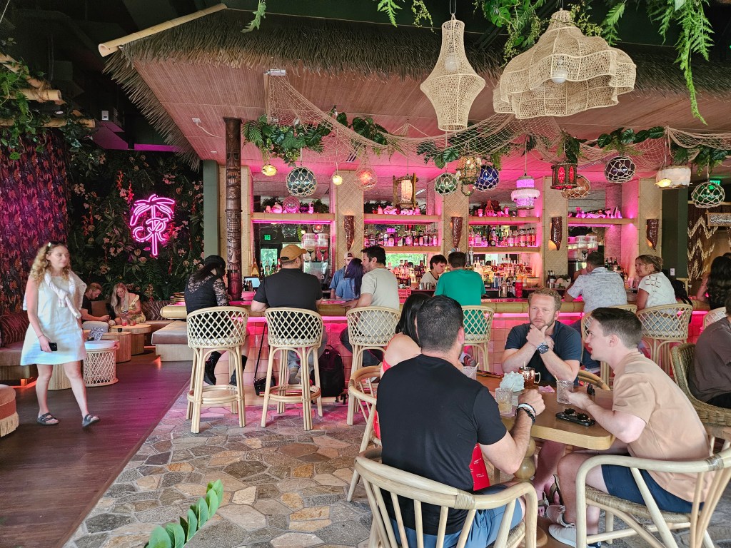 The tiki lounge features an abundance of tropical plants, wild wallpaper, neon lights, outdoor and open-air seating and is unique in this area though I should point out Laka Lono Rum Club in the Old Mark is also worth a visit and some place I will explore in the future.