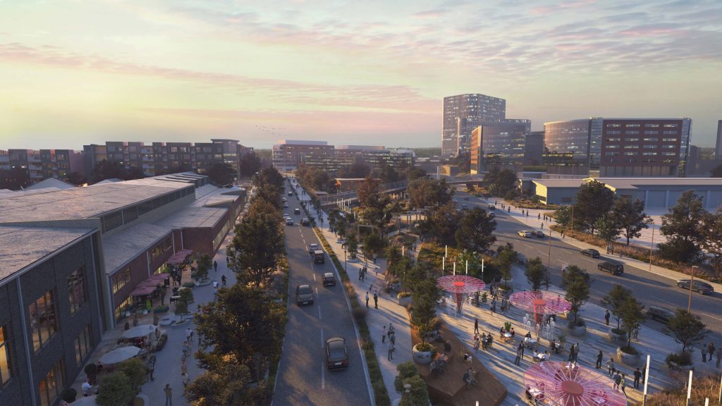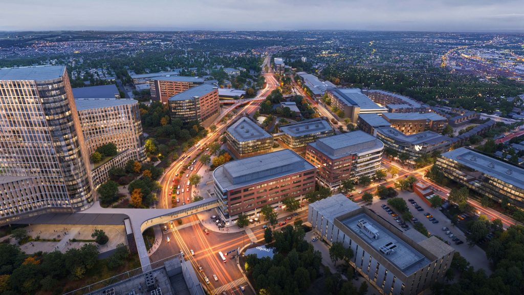 Designed by Holland Basham Architects, the mixed-use Edge District will combine office space, retail, multifamily residential in addition to educational and health care related facilities in a walkable environment. The goal is to blend UNMC’s campus with the surrounding community.
