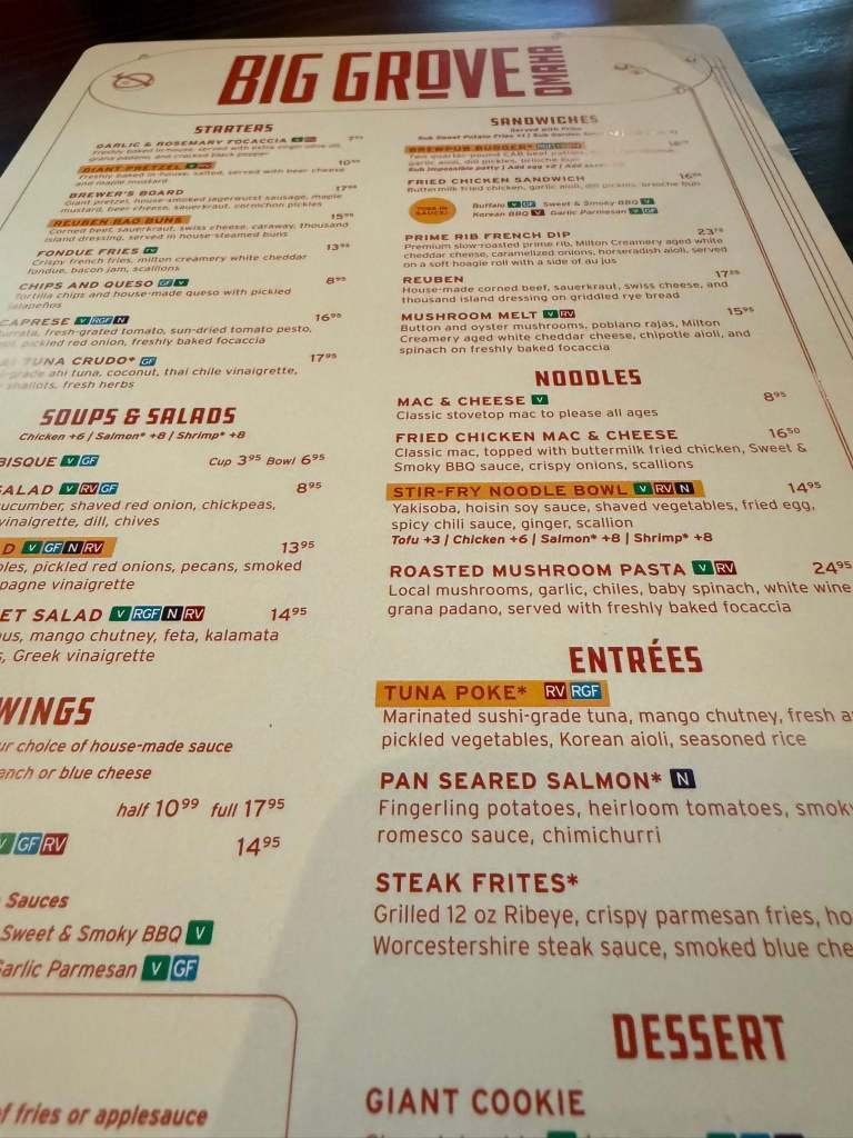 Beer options included a Mango Wheat, Marzen, Stout and a Hazy IPA among others. Some of its offerings will be exclusive to Omaha. Food options included starters, salads, burgers, noodles, a few entrees and a kids menu!
