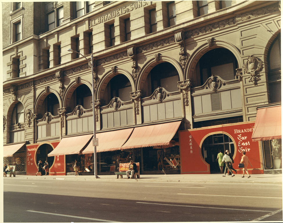 The Brandeis family relocated to Omaha in the 1880s. He employed his eldest, Arthur, to help him run his first store in town called The Fair on 13th between Howard and Jackson Streets. A shrewd businessman, Jonas employed a number of tactics to draw attention to his store. Among these were sidewalk sales, window displays that he kept lit up at night, packing a wagon full of marked down merchandise that he would ride throughout town and releasing a dozen balloons with coupons for free clothing each Saturday night.