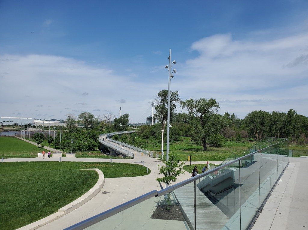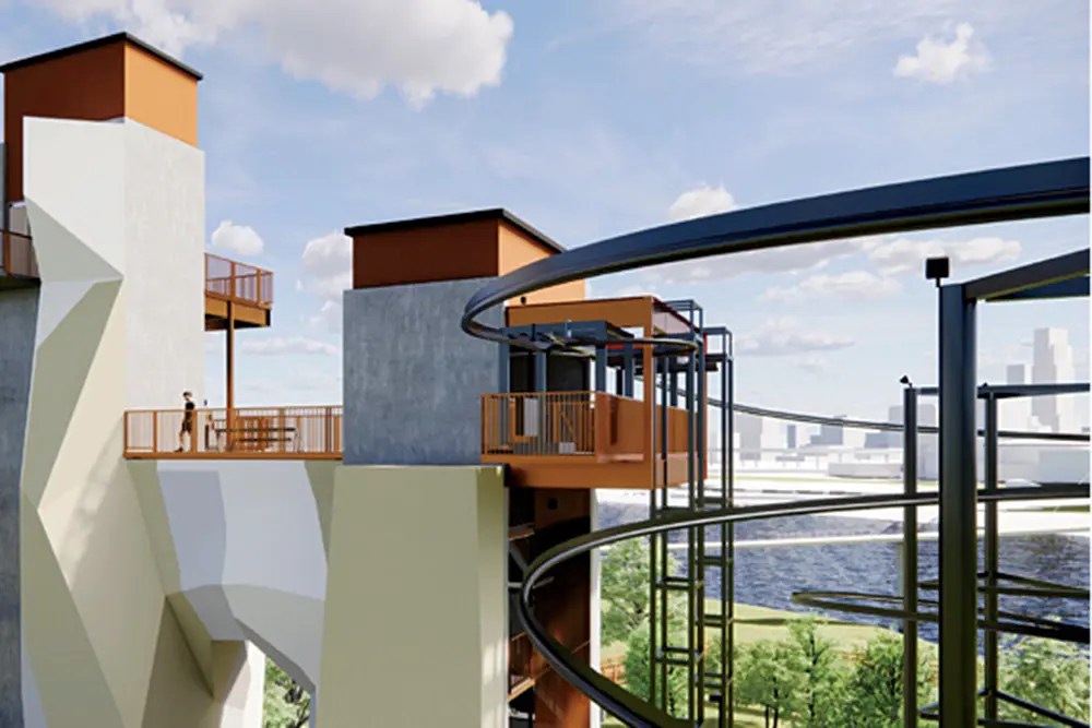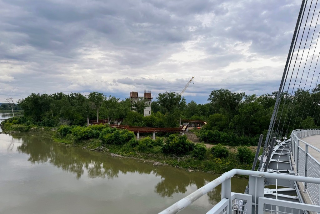 Also in the works is the Treetop Walk with elevated pathways that will wind through the trees on the park’s north side The 1/2 mile loop will feature educational components in addition to views of Omaha’s skyline while connecting to both the pedestrian bridge and the tower. The project also includes the Charles E. Larkin Pier, dog park and a new playground in addition to Belle’s Play Garden, the Missouri River-themed playground with water features.