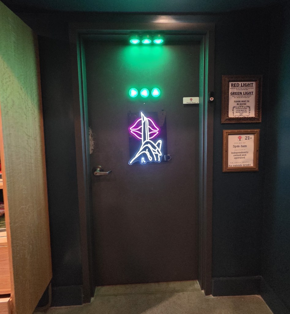 While doing research for an upcoming exploration of Hotel Indigo, I took the opportunity to check out its speakeasy: Anna’s Place. Named in honor of Omaha’s “Queen of the Underworld”, the hidden cocktail lounge opened in 2022. The entrance is tucked away just past the front desk near the lobby. If the lights are red, you need to wait until they turn green at which point you can press the doorbell for entry.