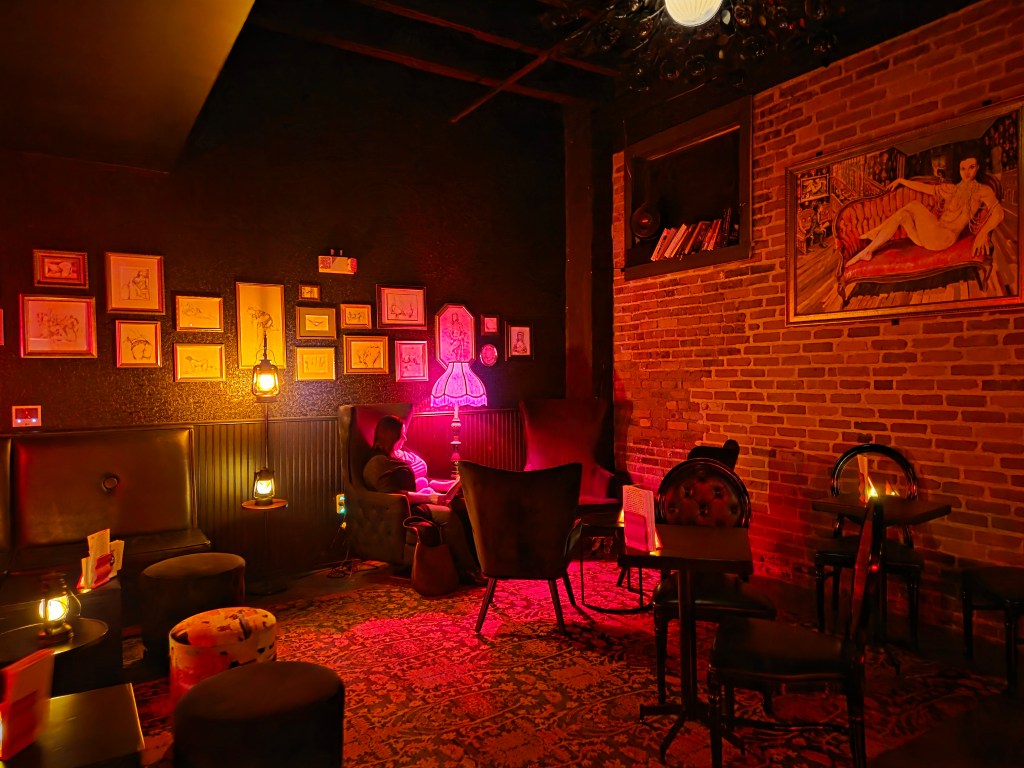 Once inside you’ll find a dark, cozy environment decked out in red lights with comfortable seating and decorated with sketches of burlesque dancers from local artist Watie White. The menu offers several varieties of Old Fashioned’s among other options. Anna’s Place is known for its reliance on local and house-made ingredients and its pop-up cocktail events. Each has a different theme such as the upcoming Season of the Witch on November 30th. It will feature four drinks inspired by pagan and witchcraft traditions. Tickets can be purchased on its website.