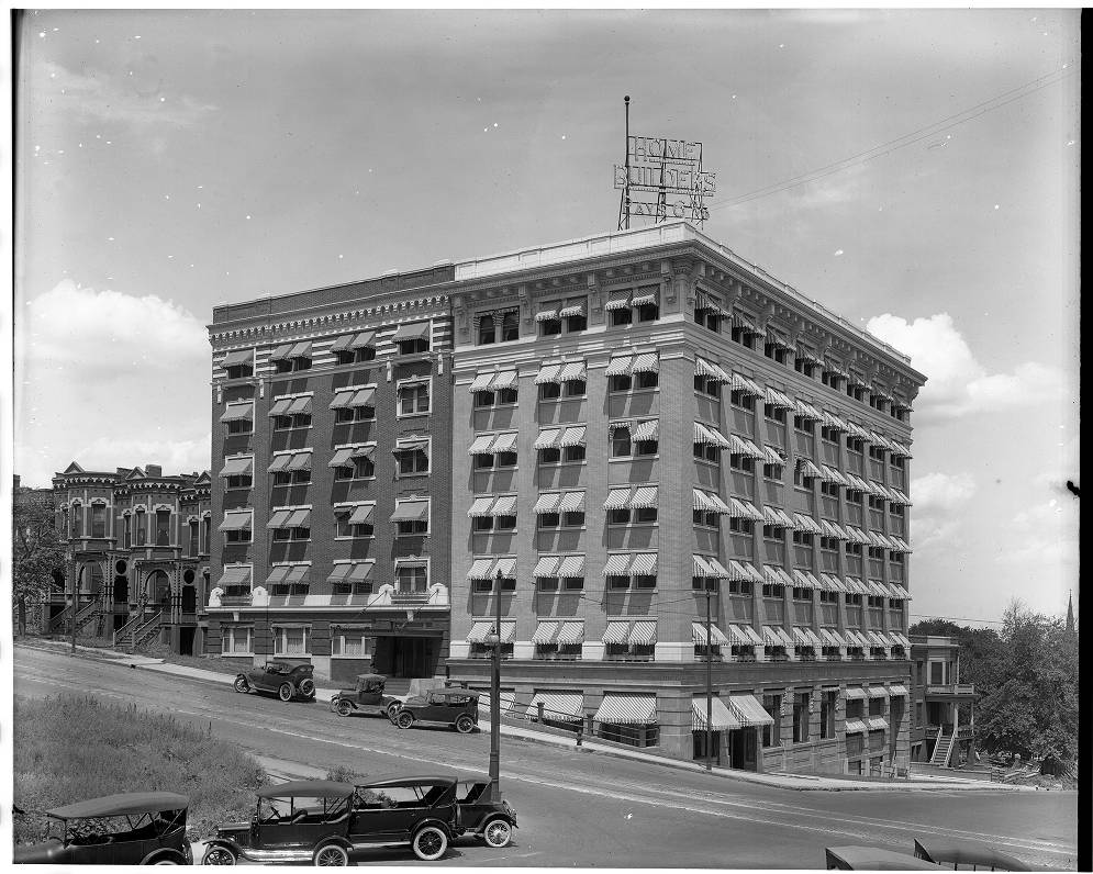 El Beudor got its unusual name from the company’s secretary, Cassius Clay Shimer, who named it in honor of his three daughters—Elinore, Beula, and Dorothy—using the first syllable of each name. Home Builders Incorporated, the company that built the structure, moved its offices into the building and placed a large sign on the roof facing east toward downtown—an advertisement that was hard to miss.