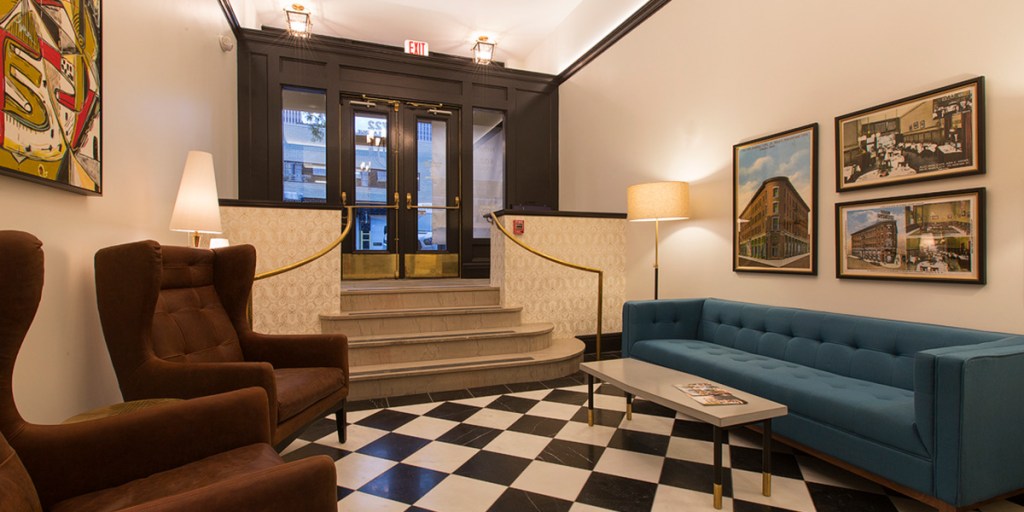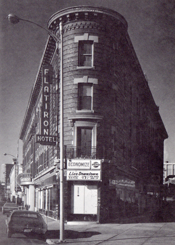 During the 1940s and ’50s, the hotel reached its peak under the ownership of Isadore Weiner. The restaurant space that once housed the Flatiron Café became the Hayden House during this time. In the following decades, however, both the Flatiron Hotel and the surrounding neighborhood declined. There was even a proposal in 1964 to demolish the building and replace it with a new office and government complex.