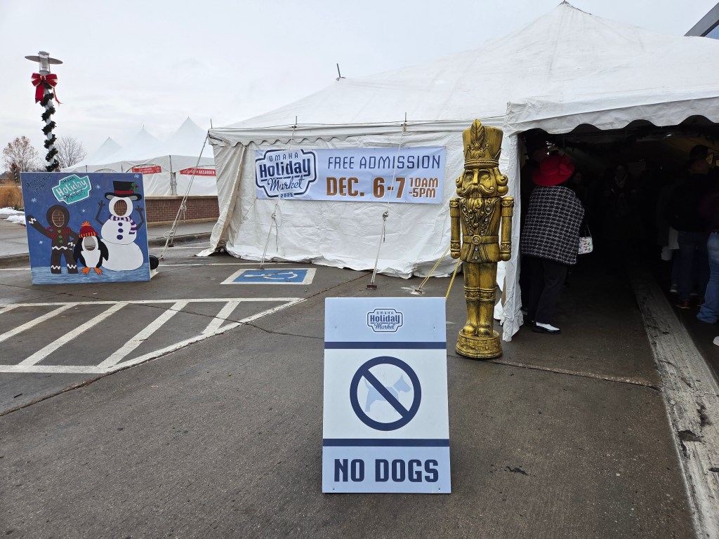 This weekend only is the Holiday Market at Aksarben Village. This was my first time and the line at the entrance was a bit long but don’t let it discourage you; it moves quickly. Admission (and parking) is free, and the tent is heated so it provides a comfortable atmosphere to shop, snack and have a cocktail if you desire. This was my first time visiting and found it to be an enjoyable experience despite the crowd.