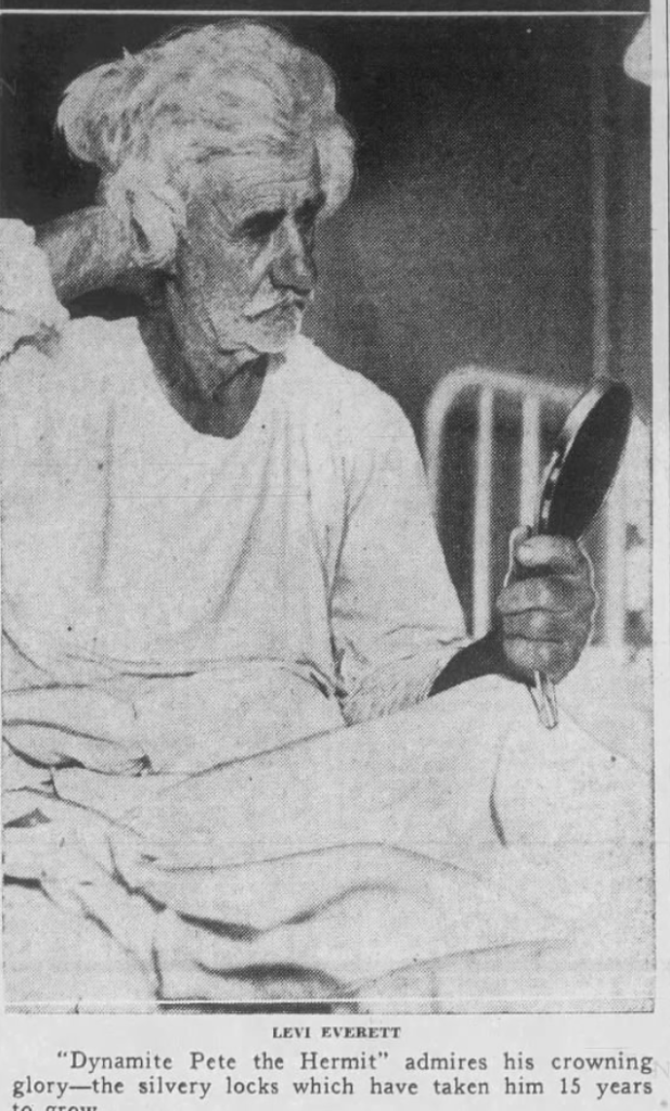 At one point, Levi Everett claimed to be “the last bona fide hermit living in a cave in the United States.” Born in 1862, Levi worked as a “dynamite monkey” in his youth and was said to be the only person crazy enough to ride a wagon full of nitroglycerin along the bumpy, rutted roads to the rock quarries in Cass County, where he was tasked with lighting the dynamite.
