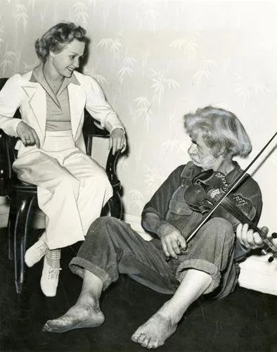 With a beard and long hair that he cut only every 15 years or so, Pete often wore overalls, was not fond of shirts, and refused to wear shoes. The exploits of Dynamite Pete are well known. On at least one occasion, he is said to have walked through town on his hands with a bottle of whiskey in his mouth to win a bet. He once lit a stick of dynamite inside a bar and proceeded to ask railroaders if they were man enough to join him for a drink. When they fled, he pinched the wick and finished their beers. He once invited a group of curious children into his cave for a home-cooked meal—chili in a tin can heated over a fire. Only afterward did he realize he’d forgotten the “secret ingredient,” which he corrected by taking the wad of chewing tobacco out of his mouth and mixing it into the food. He was also known to participate in local talent shows, where he played his favorite tune, “Turkey in the Straw,” on his violin.