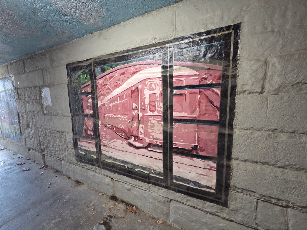 By 2015, the remaining Dodge Street Subway was showing its age and badly needed repairs. Poor lighting made it an easy target for graffiti and other mischief, and clogged drains led to frequent standing water. Exposed rebar, uncovered during a sidewalk repair, added to its worn and uninviting appearance. Later that year, a fundraising campaign helped address these issues with mortar and concrete repairs, new LED lighting, security cameras, and a skid-proof surface. Additional improvements included new signage and murals depicting five window-like views of Dundee landmarks.