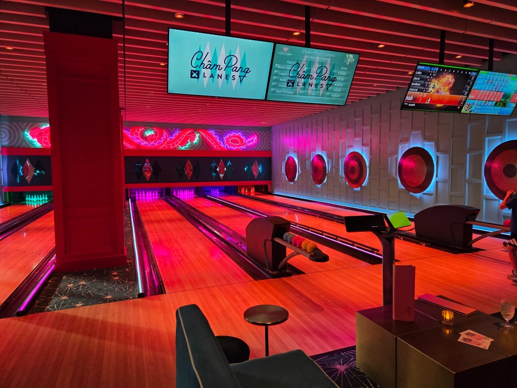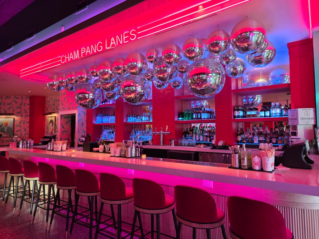 Operated by Flagship Restaurant Group, Cham Pang whose name is a play on champagne offers cocktails, beer, champagne of course, wine and a menu that includes nachos, tacos and quesadillas. Lanes can be rented by the hour between $5-$15 per person.