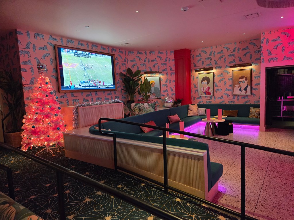 I recently got the opportunity to visit one of the new(ish) businesses that call the Brickline home: Cham Pang Lanes at 910 Harney Street. This is the second location with the original being in Phoenix. Full of neon lights and bright colors, it’s not traditional bowling but duckpin bowling with hand-sized balls, shorter lanes and smaller pins (similar to Bob & Willie’s in Blackstone before it closed).