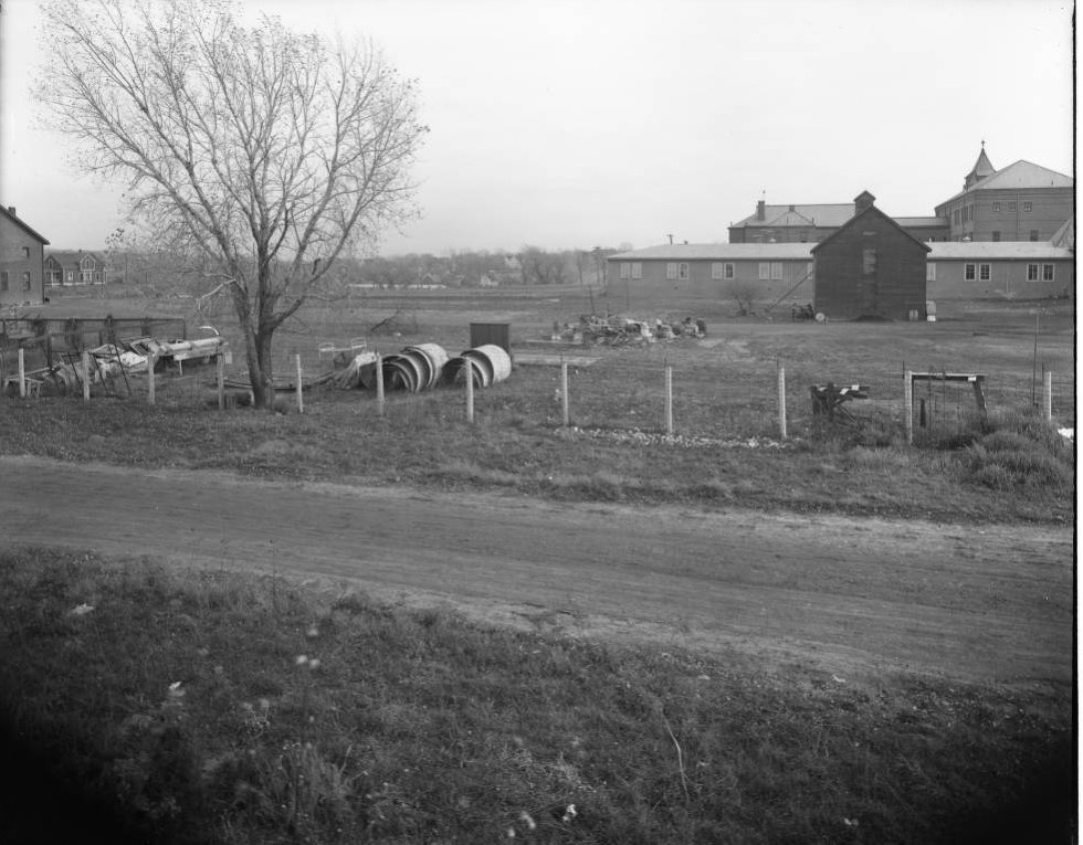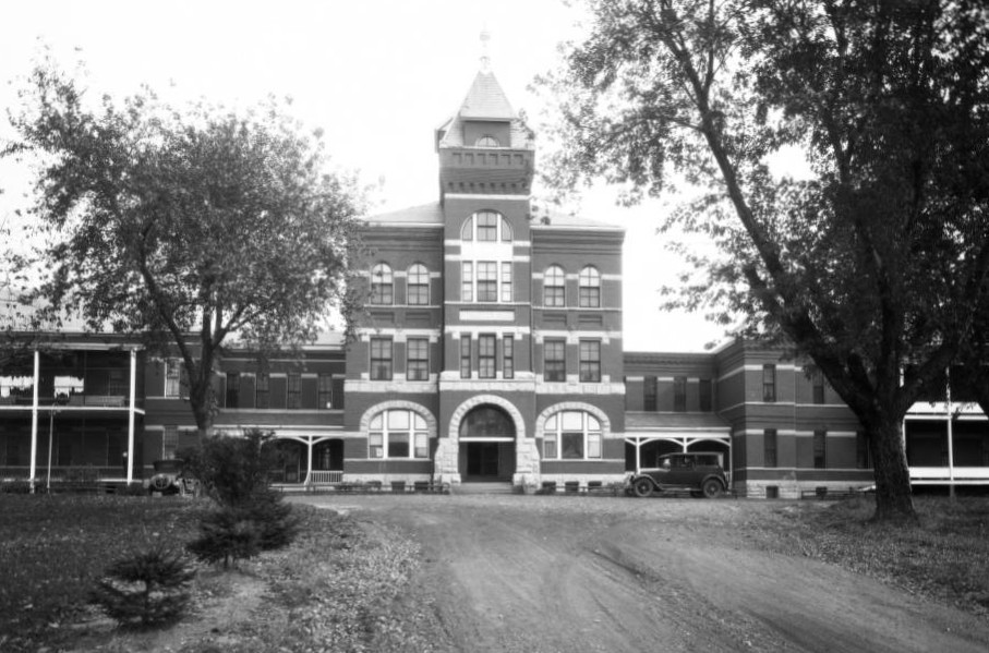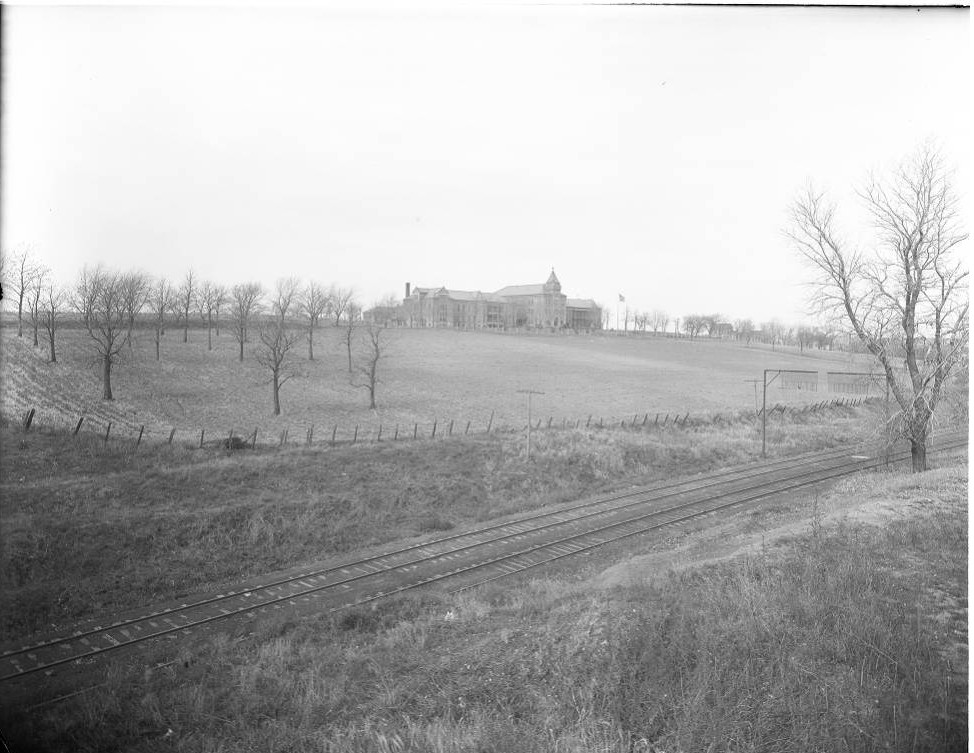 Tracks for the Omaha Belt Line ran through the center of the property. On the eastern end was the poor farm cemetery, often called a potter’s field. Constructed in 1888, the original hospital focused on treating tuberculosis, plagues, and psychiatric patients. Over time, overcrowding and structural problems made a new facility necessary.
