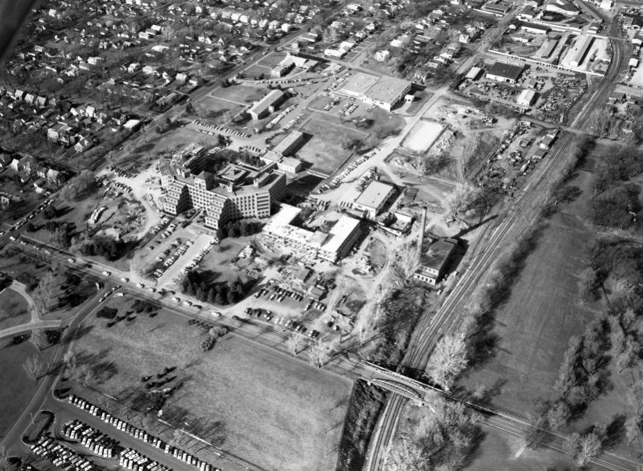 Completed in 1932, the new hospital was designed by John Latenser & Sons Architects. Its southern façade facing Woolworth Avenue featured open-air sun porches and a staggered, stepped plan along the elevations. By this time, the poor farm had ceased operations, and the property had shrunk from 160 acres to just 40.
