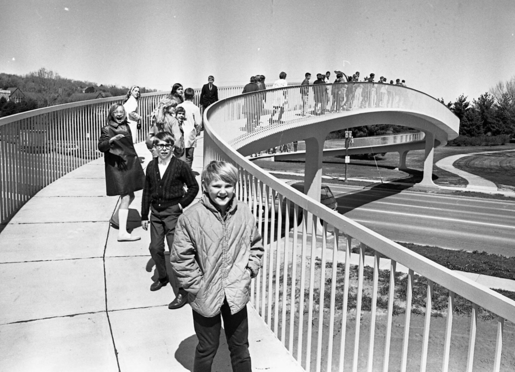 In 1962, the City of Omaha began constructing pedestrian bridges in response to the city’s continued growth. With streets growing busier and more children walking to school, safety became an increasing concern. The issue was amplified after World War II, as returning servicemen fueled a population surge that saw Omaha grow by 35 percent between 1940 and 1960.