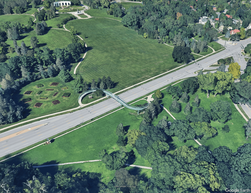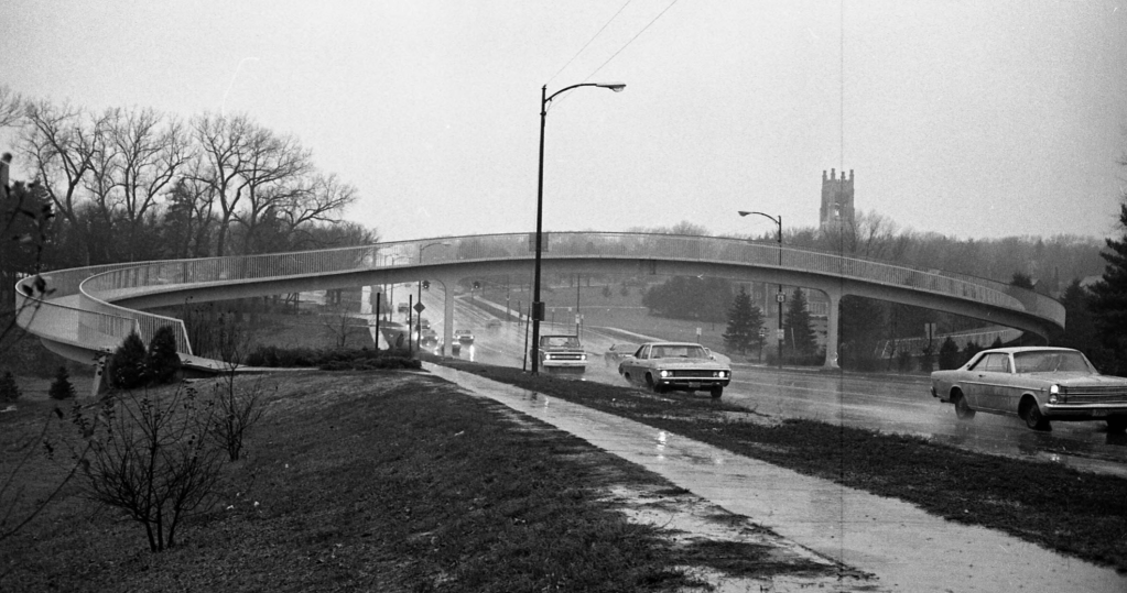 Today, the Dodge Street Overpass remains the most heavily used of Omaha’s pedestrian bridges. It continues to serve nearby residents, visitors to Memorial and Elmwood Parks, and students from the University of Nebraska at Omaha, St. Margaret Mary, and Brownell Talbot.