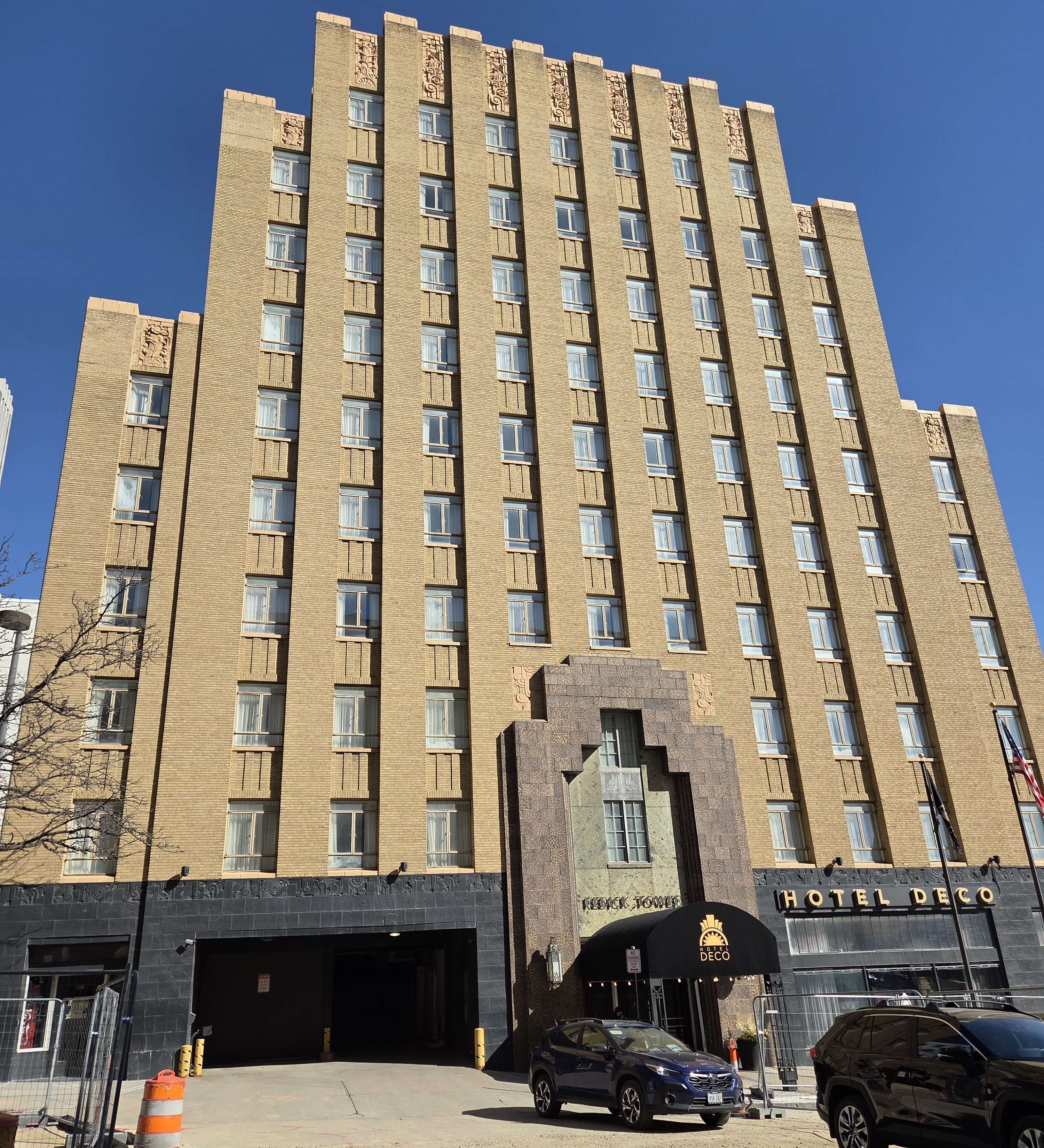 Located on the northwest corner of 15th and Farnam Streets, across from the Orpheum Theater is another Art Deco masterpiece: Hotel Deco.