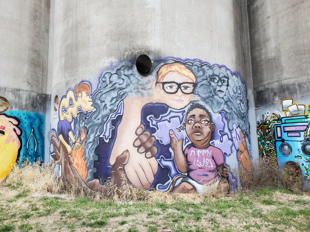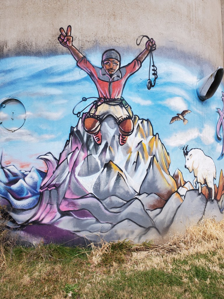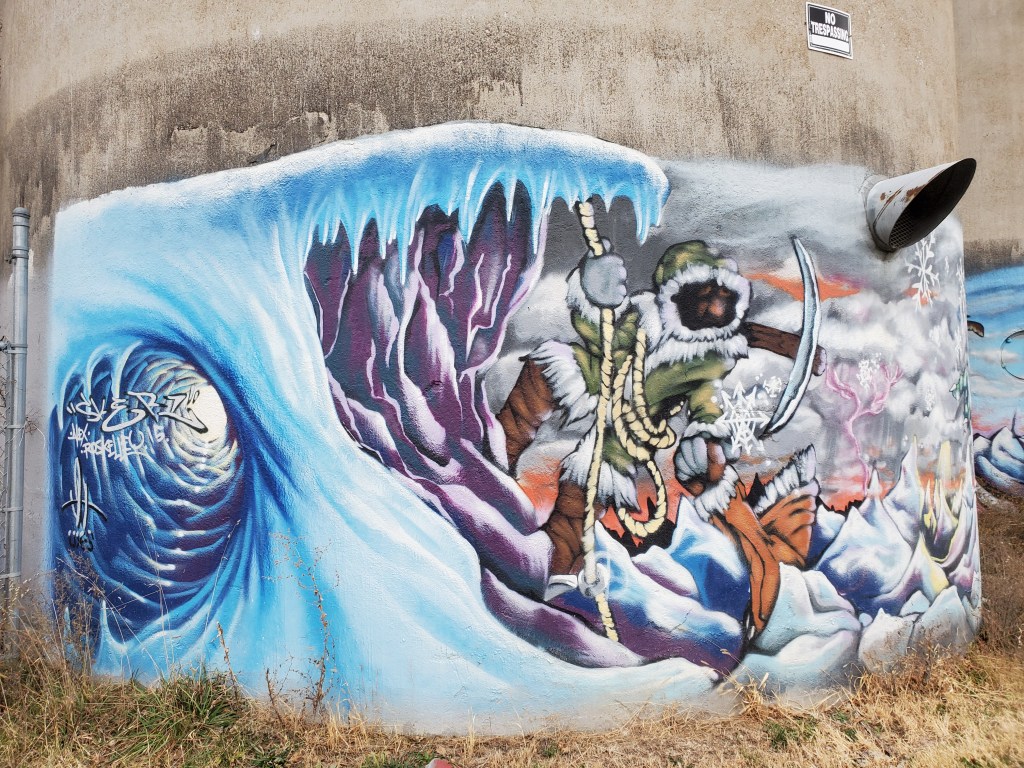 Location: South Omaha Trail painted on the grain silos just south of Vinton Street. Photos courtesy of Michele Wyman.